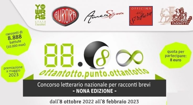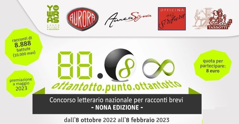L’appuntamento con la scrittura si rinnova per la nona edizione del Concorso Letterario Nazionale per racconti brevi 88.88. Fino all’8 febbraio 2023 l’Associazione YOWRAS Young Writers & Storytellers propone la sfida degli 8.888 caratteri da non superare.