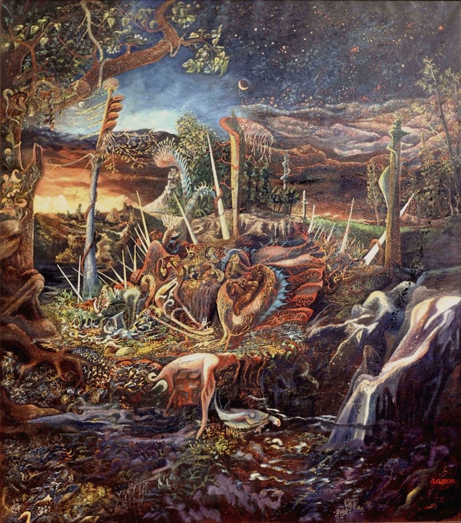 Marco Almaviva (Novi Ligure, 1934) ha sviluppato un percorso artistico significativo che lo ha reso una delle figure principali nel panorama artistico contemporaneo. Pur avendo una formazione tecnico-scientifica, ha coltivato i suoi interessi artistici negli anni ’50 a Milano, frequentando l’ambiente di Brera, lo scultore Francesco Messina e il gallerista Peppino Ghiringhelli. Alla metà di quel decennio conosce Carlo Carrà, Dino Buzzati, gli ambienti delle avanguardie e il critico Giorgio Kaisserlian, riferimento per l’opera di Fontana e lo Spazialismo. Si fa forte in lui l’esigenza di una ricerca linguistica e poetica autonoma con cui esprimere il suo rapporto con la natura. Così, tra il 1966 e il 1967, mette a fuoco una ricerca che chiama Tonaltimbrica, che si contraddistingue per per l’uso innovativo di toni e timbri nella pittura. Il dipinto “Palpito primordiale” (1967) diventa il manifesto e l’emblema della sua sensibilità tonaltimbrica.