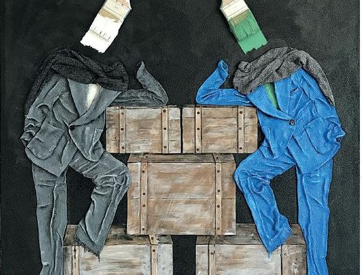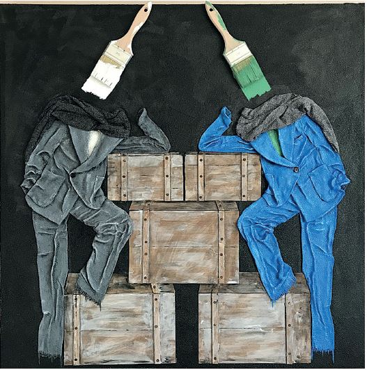 «L’arte di Bruno Azzini è concetto, pensiero letteralmente concretizzato attraverso il pennello, che viene infatti applicato alla tela ed utilizzato per rappresentare il capo dei personaggi. L’artista lascia il compito di immaginare la storia delle sue figure all’osservatore, rendendolo partecipare al gesto creativo.»