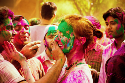 Durante la festa indiana denominata “Holi” interi popoli dei villaggi dell’India, Bangladesh, Nepal e Pakistan si lanciano sacchi di polverine colorate e gavettoni per celebrare la rinascita e l’amore e la definitiva sconfitta del male in favore del bene. La ricorrenza cade in primavera ed è portatrice di messaggi positivi universali, di amicizia, fratellanza e amore.